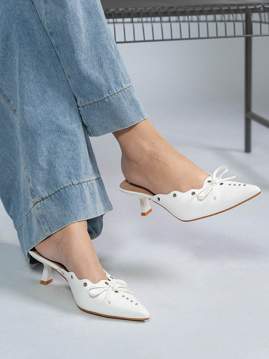 PRODUCT STORYStand out from the crowd in effortless elegance with our Scallop Eyelet Mule Heels...