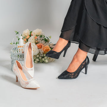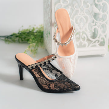 PRODUCT STORYExperience ultimate elegance with Irish Lace Glitter Heels, featuring an elegant lace finishing, glitter...