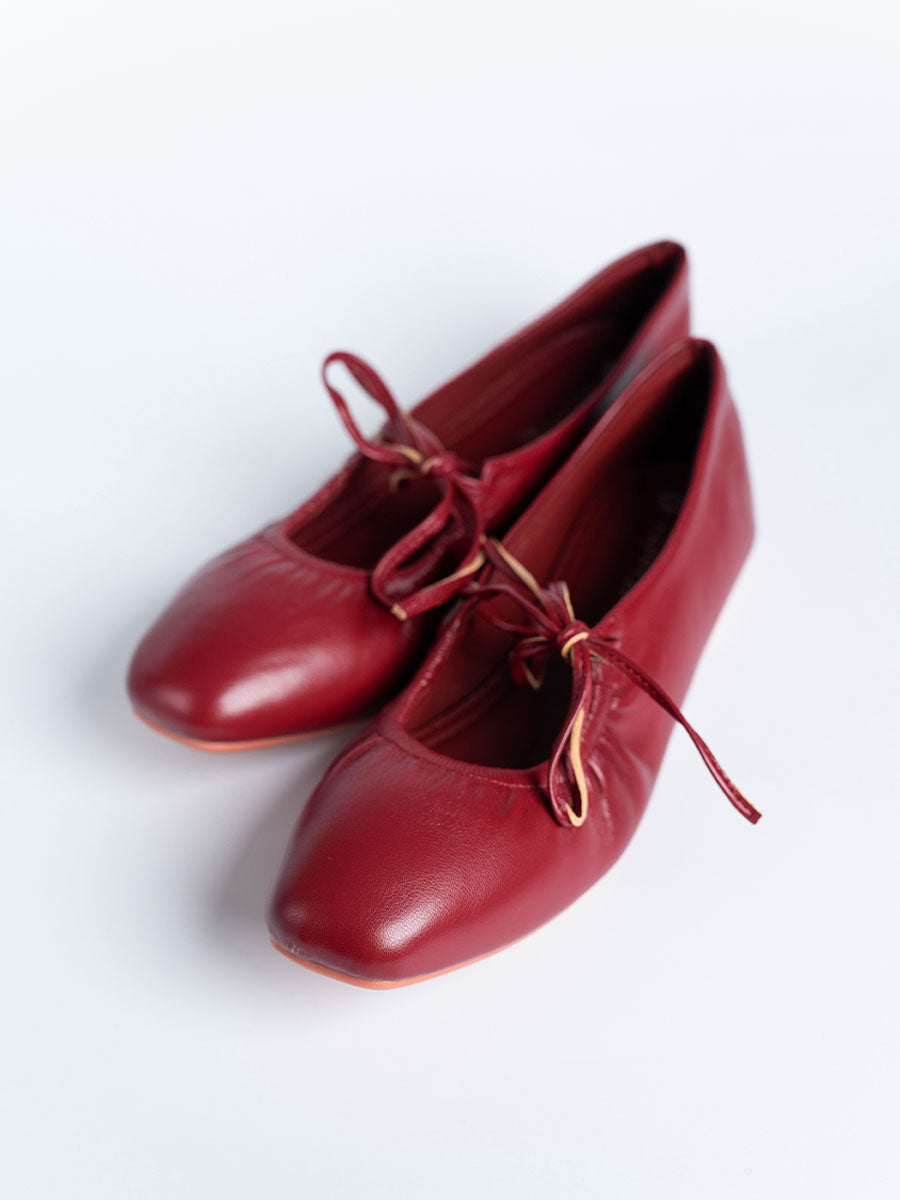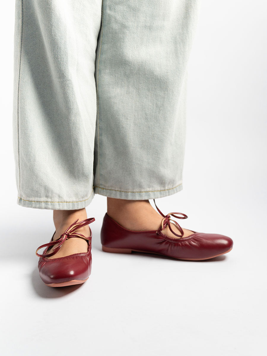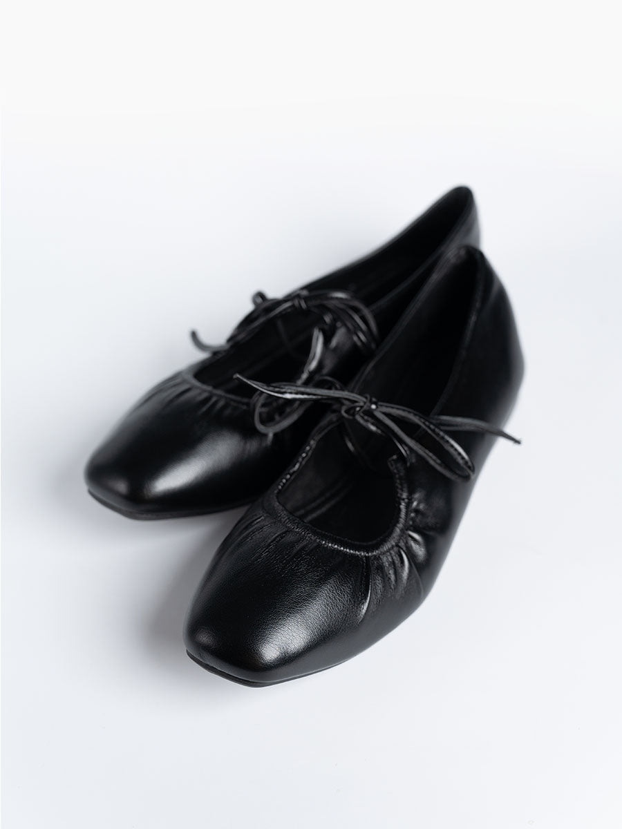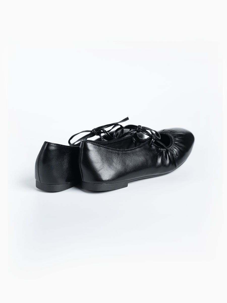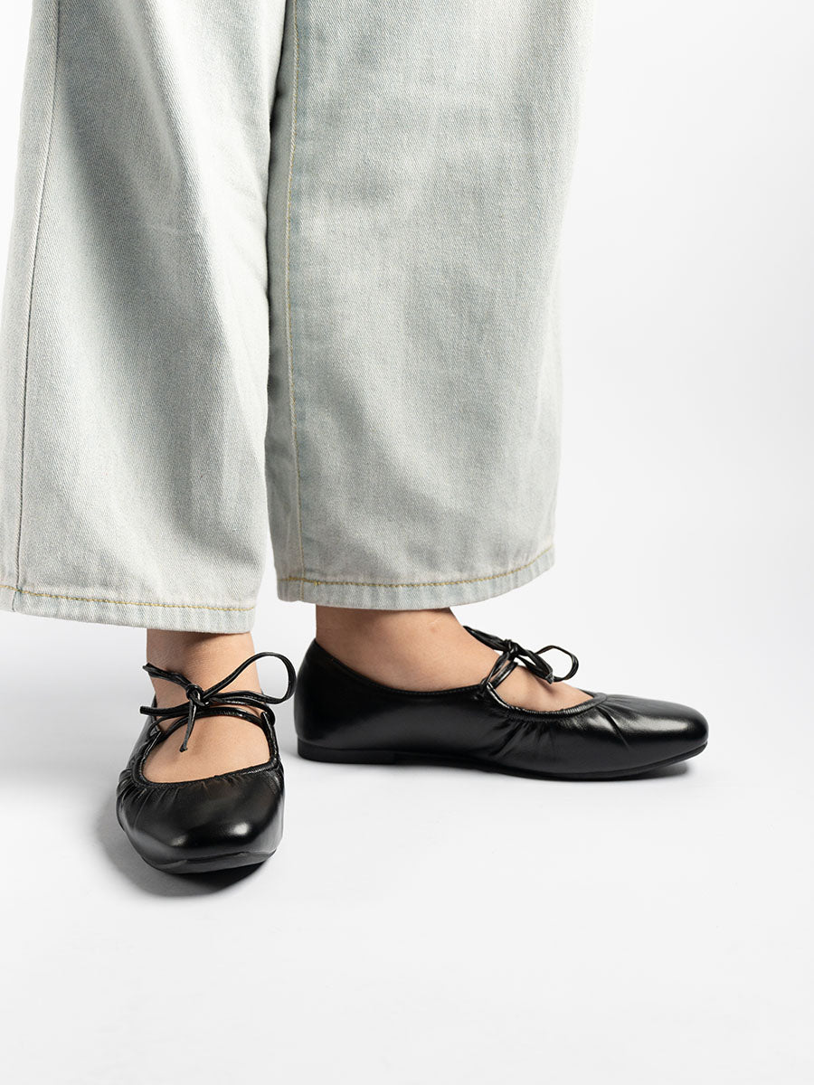 - Featuring round shape front toe and unique tie straps, these flats bring a quirky edge to any look.