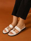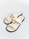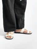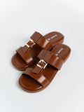Perfect for slipping on and stepping out, this Beckie Slip on Sandals offer a seamless blend of comfort and style. Featuring a chic gold metal accent on the cross, leather straps across the vamps, adding an elegance touch while providing a secure fit. Whether you’re headed to a sunny brunch or simply elevating your everyday look, these mules are your go-to for adding a dash of style and sophistication.