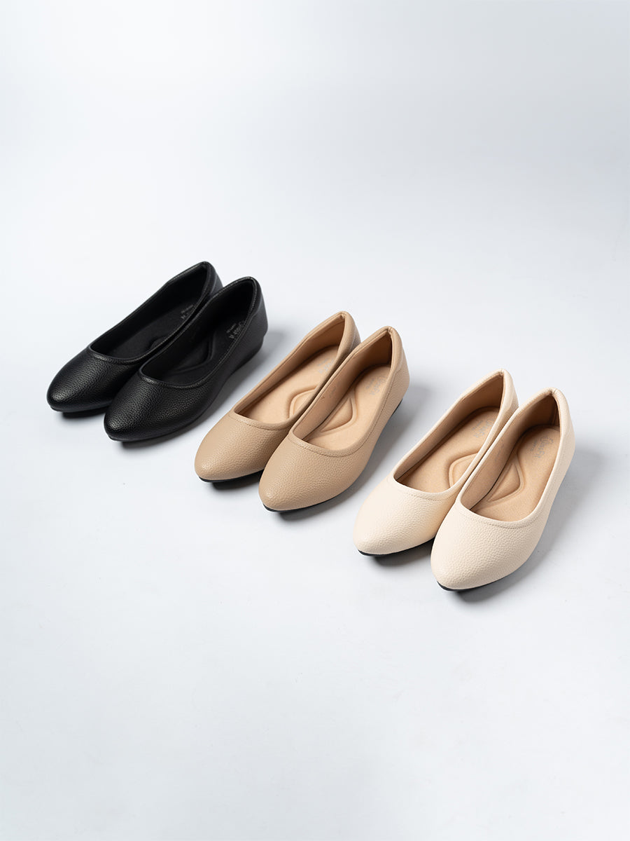 - 1 inch (2.5cm) flat platform to reduce arch pain.