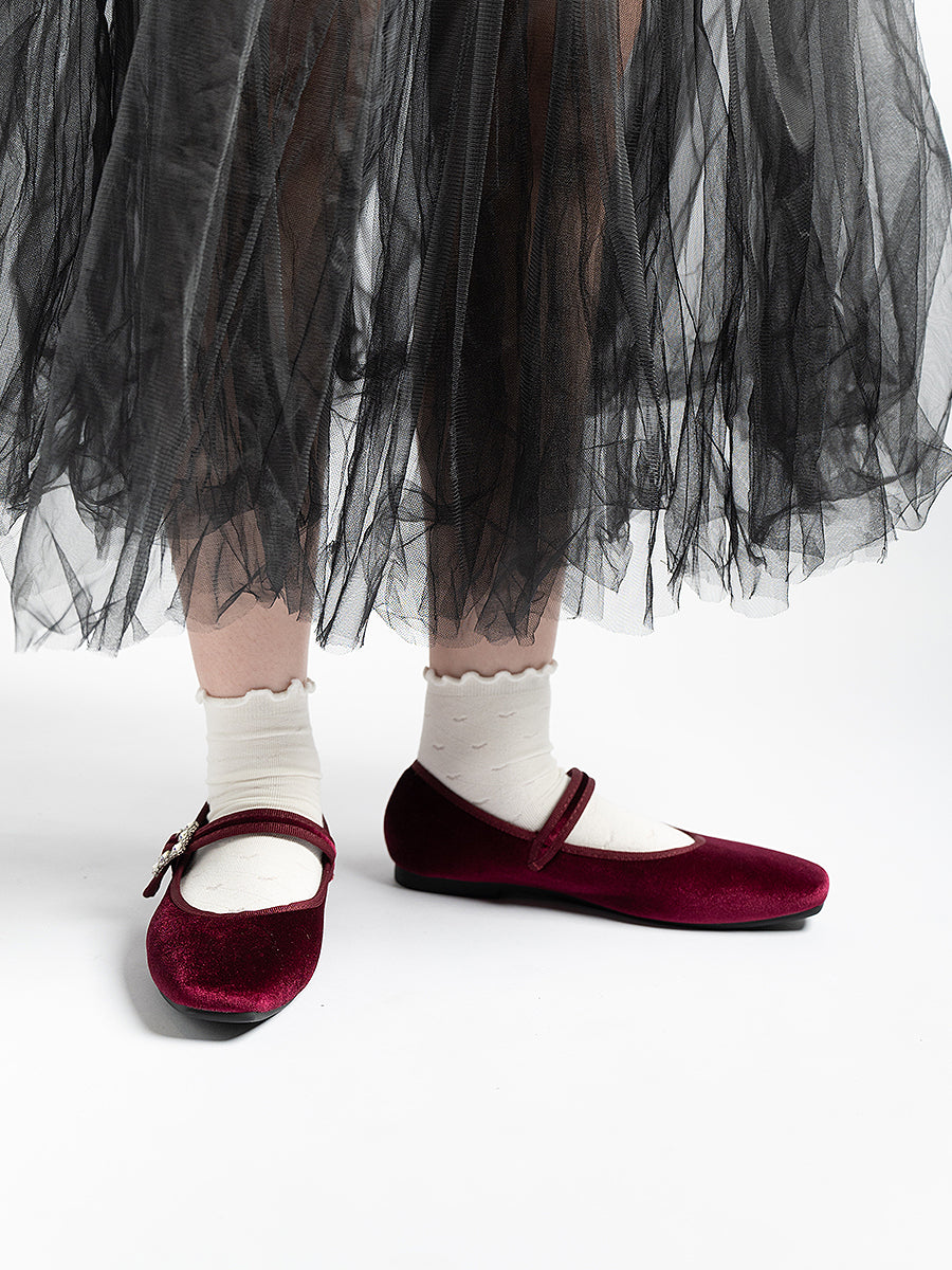 Cherry Rhinestone Flats — where fashion meets comfort. Crafted with a beautifully distressed suede finish that exudes a luxurious, vintage-inspired charm, these flats embody elegance and grace for everyday styling. Designed in a versatile dark tone and accented with delicate rhinestones, this ballerina flat transitions effortlessly from daily wear to special occasions. Easy to style and timelessly chic, the Cherry Rhinestone Flats are a contemporary wardrobe staple you’ll reach for again and again.