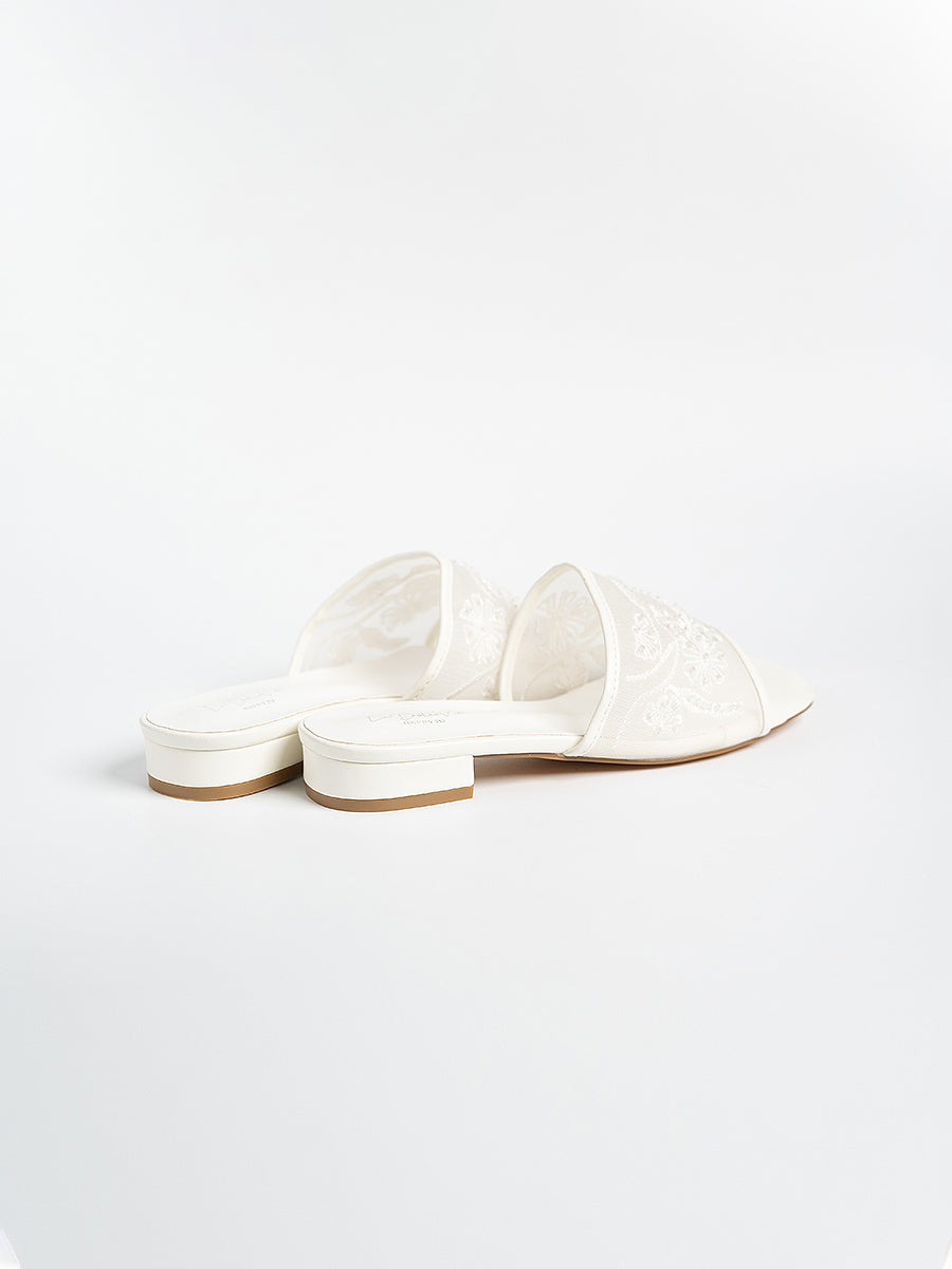 The Elysia Lace Sandal Slides exude charm and sophistication with intricate embroidery and delicate bead embellishments, adding a sweet, graceful touch. Effortlessly versatile, they transition from refined daytime moments to intimate evening gatherings—crafted for comfort without compromising style.