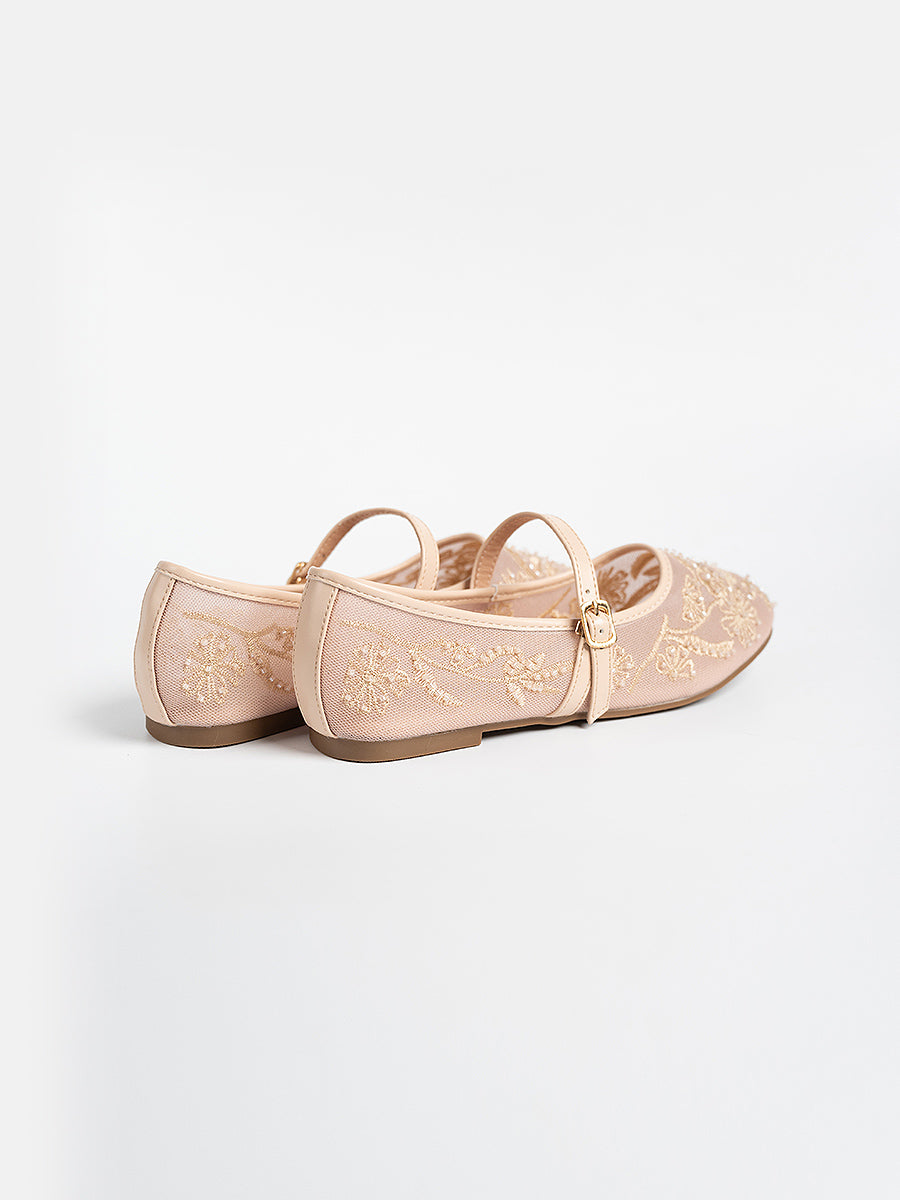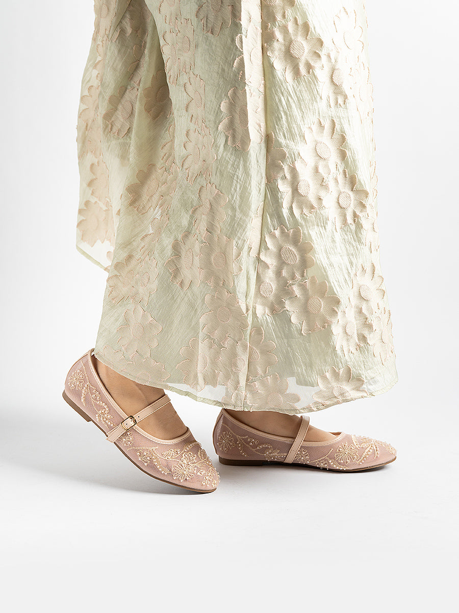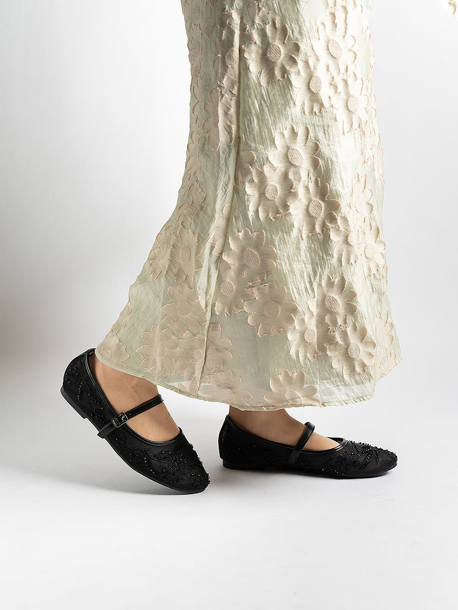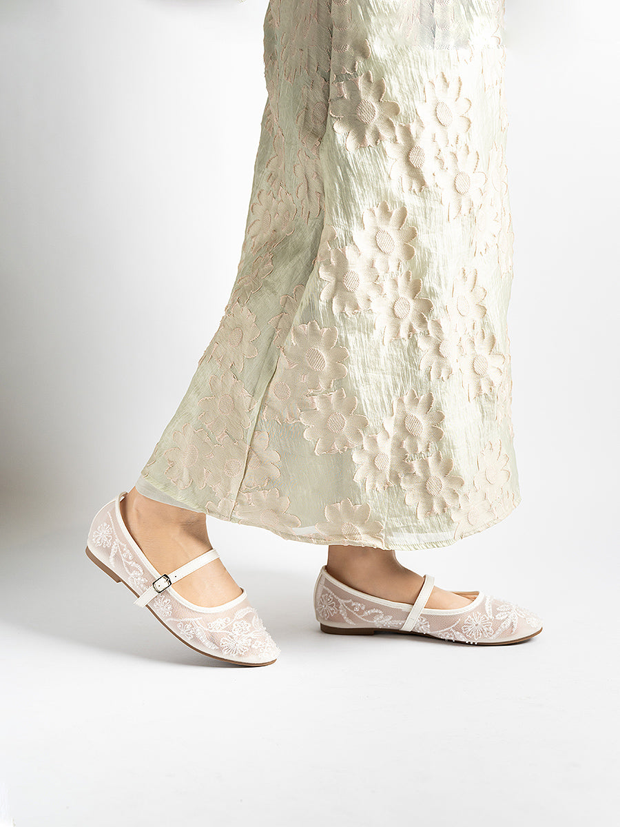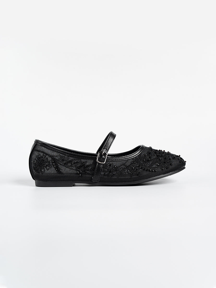 Where modern elegance meets delicate artistry, Estee Lace are a quiet celebration of beaded floral beauty. The transparent mesh upper is adorned with intricate beadwork each detail carefully arranged like flower in soft sunlight. Perfect for those who seek a balance of elegance and practicality.