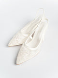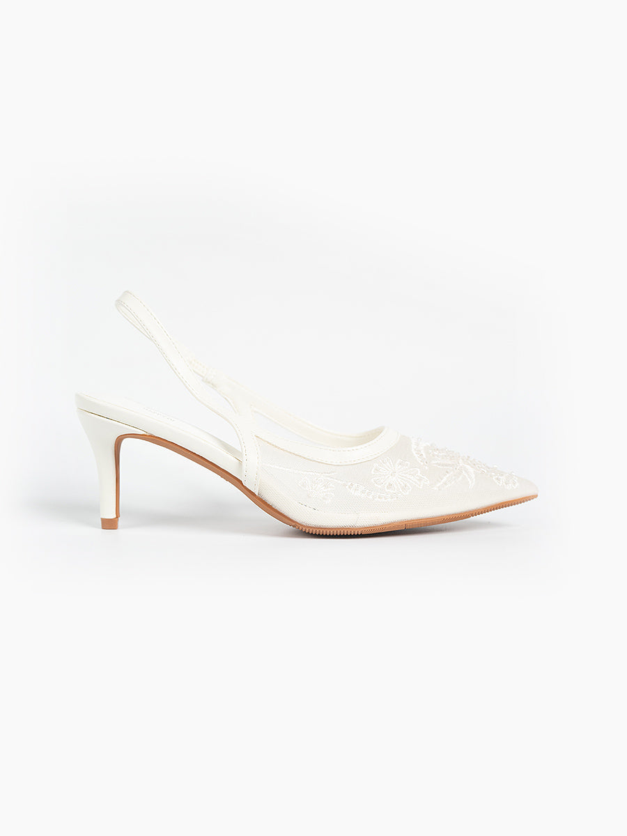 Evora Lace Slingbacks Pumps: For moments that call for a touch of elevation, with its mesh silhouette and slingback design, this pair seamlessly complements any ensemble. Whether it’s a graceful walk down the aisle, bridesmaid elegance, or a festive reception look, you’ll be amazed at how versatile these heels are—perfect for weddings and every celebration beyond.
