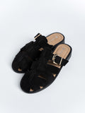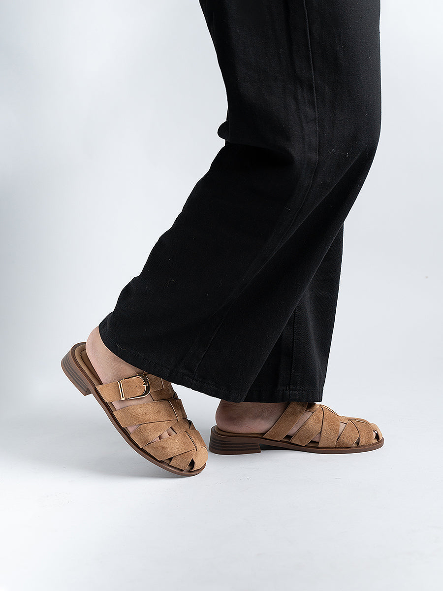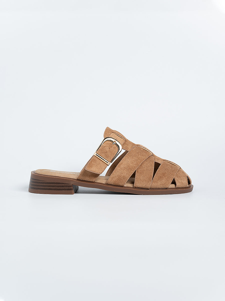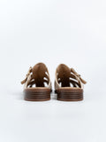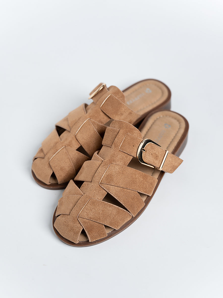 The Flynn Suede Cage Mules are inspired by classic gladiator styles, crafted from soft suede leather and accented with a polished shiny buckle for a refined touch. Set on 3cm low platform soles that offer the perfect lift, they blend timeless elegance with everyday comfort—effortlessly elevating your look from day to night.