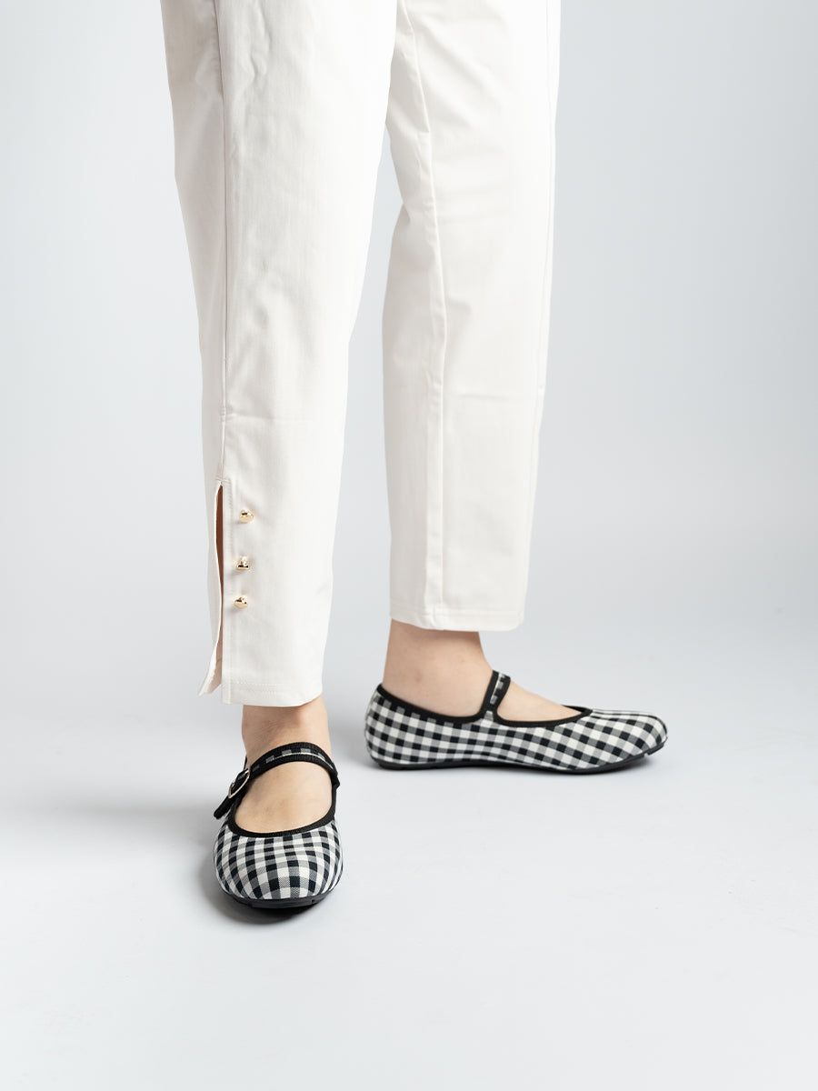 Embrace modern elegance and slip into these stunning Heidi Checkered Strap Flats. Make every step a statement with these chic checkered ballerina flats. Designed for the modern woman, they blend timeless patterns with everyday comfort. The classic checkered print adds a bold, stylish touch to any outfit, whether paired with casual denim or a polished dress. Effortless elegance for every occasion.