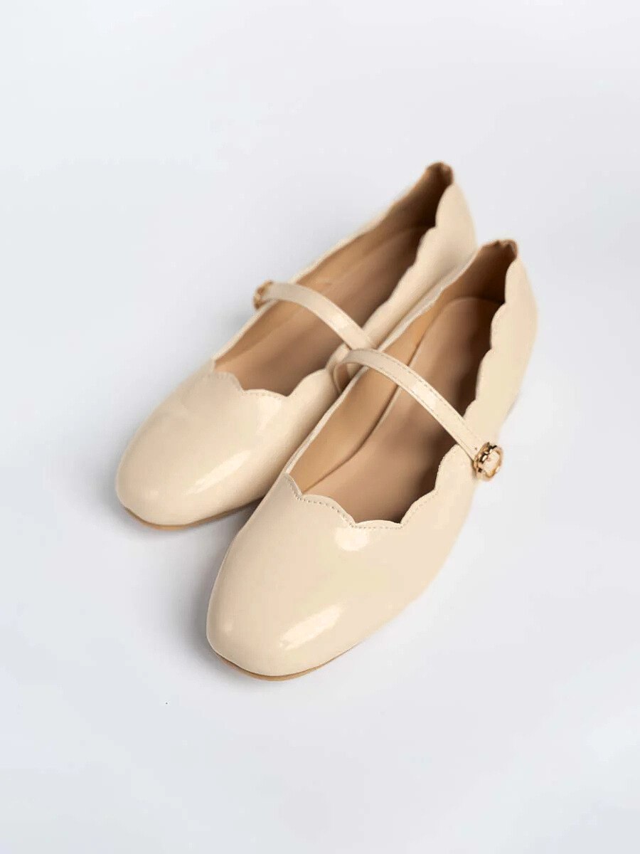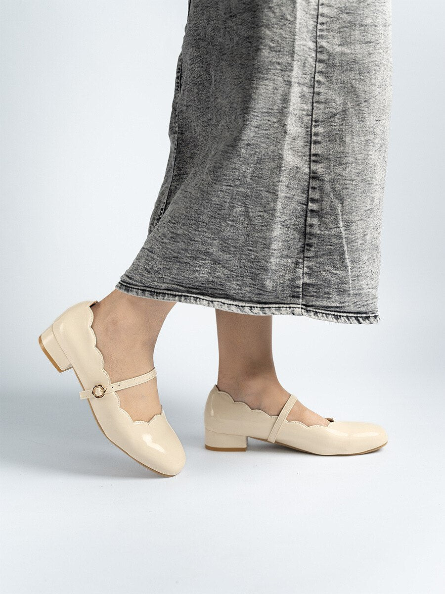 Scallop Glossy Mary Jane is the perfect partner to a wide array of ensembles. Having a comfy padded insole and heels that are not too high plus slip on feature make it the easiest and comfortable shoes to wear for every walk of life. It comes with 3cm heels and 2 basic neutral colors for you to match with your outfit. Take-charge and stay in command while still presenting a touch of femininity.