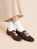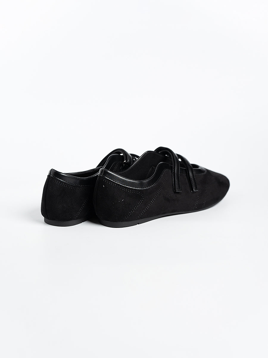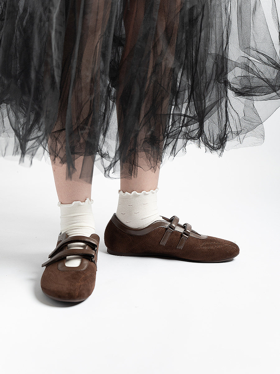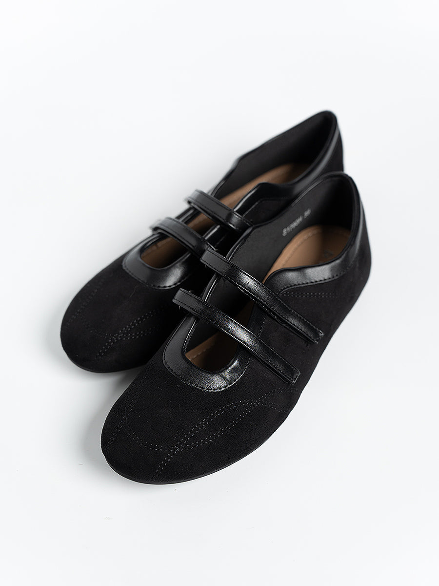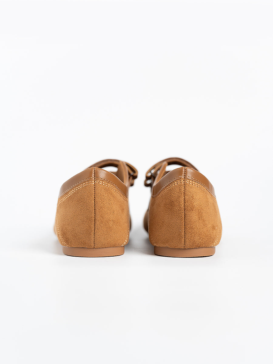 Voline Suede Flats: A suede reinterpretation of our signature Sport Ballerina, designed with a clean, minimal mood for everyday wear. Crafted from a refined blend of soft suede and smooth faux leather, this pair delivers a warm, polished aesthetic. Delicate stitching details highlight the classic round-toe silhouette, adding subtle character while maintaining effortless simplicity.