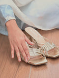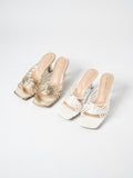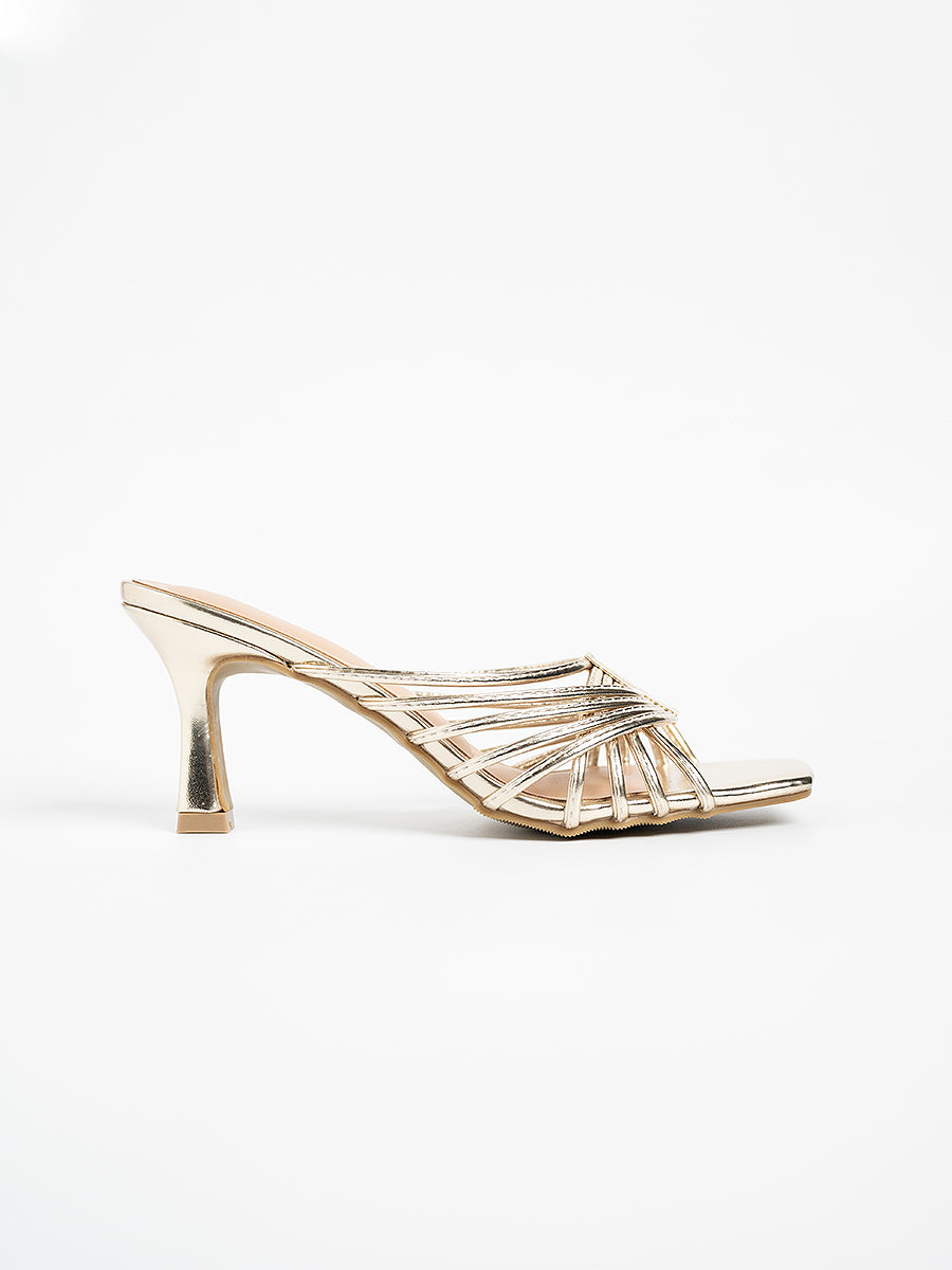 Slip into the Yaya Glitter Strap Heels and step beyond statement-making into true trendsetter territory. Designed with an easy slide-on silhouette, crisscrossing vamp straps inspired by Cleopatra elegance are highlighted with shimmering gold / silver lining. Finished with a flirty kitten heel, Yaya ensures every step shines—keeping your moment in the spotlight all night long.